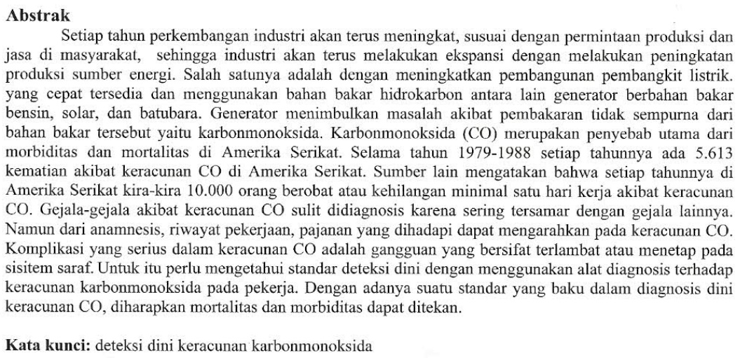 Deteksi Awal Intoksikasi Karbon Monoksida