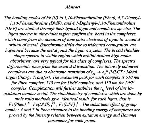 Kompleks Besi(II) dengan Lingan 1,10-Fenantrolin 4,7-Dimetil-1,10-Fenantrolin KARAKTERISASI SECARA Spektrometri Ultraungu-Tampak