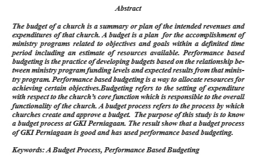 Tinjauan Atas Penyusunan RAPBG Studi Kasus: GKI Perniagaan